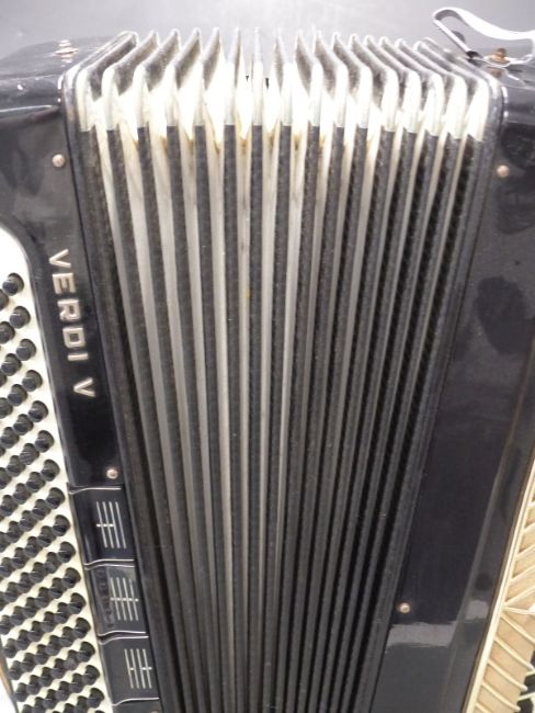 Hohner Verdit V120 bass piano accordion with 11 treble couplers and 3 bass couplers, in black gloss finish