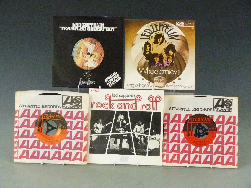 Led Zeppelin - Seven singles including Trampled Underfoot (DC1), Whole Lotta Love (ATL 70409), Rock and Roll (HS 823) and four USA issues, all in company picture sleeves