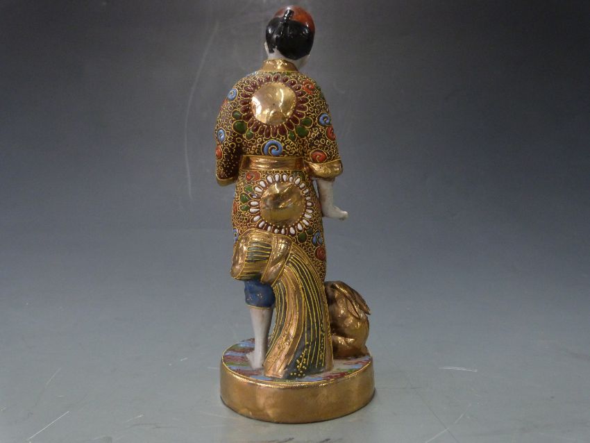 Early 20thC Japanese figure of man with rabbits, H18cm