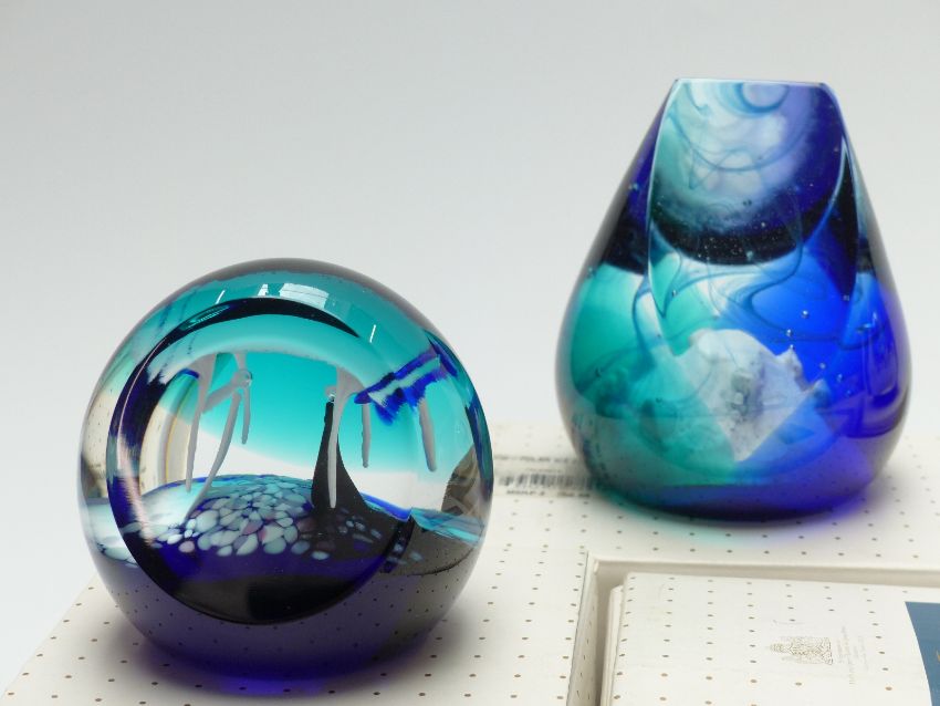 Seven Caithness glass paperweights including two Polar Ice Flow, Tablets From The Mount, Millennium Vision etc, all in original boxes.