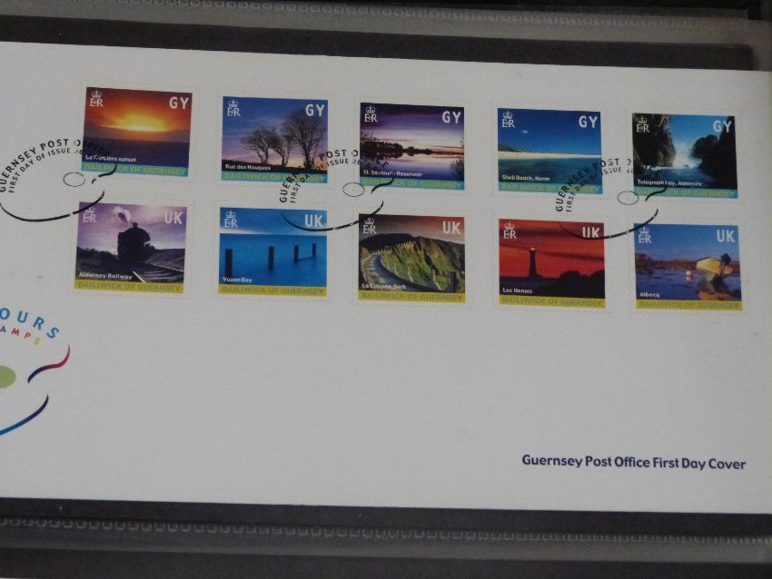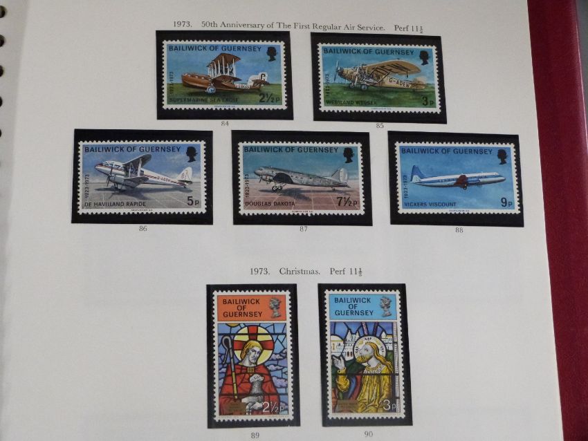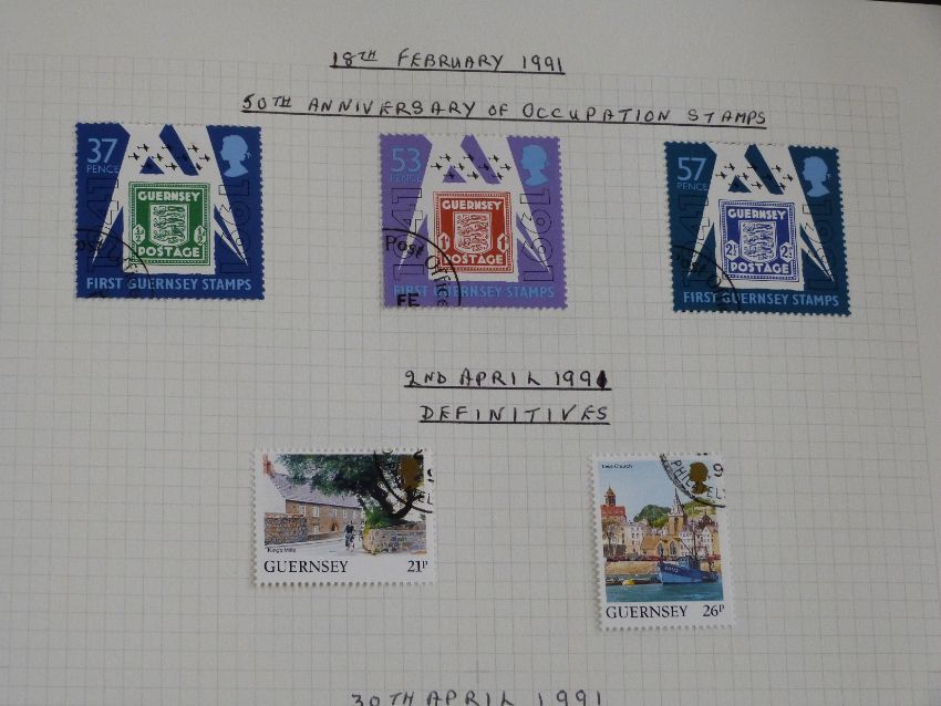 A collection of Guernsey mint stamps 1941-2005 in three albums, two albums of used stamps, three albums of first day covers, loose stamps and covers