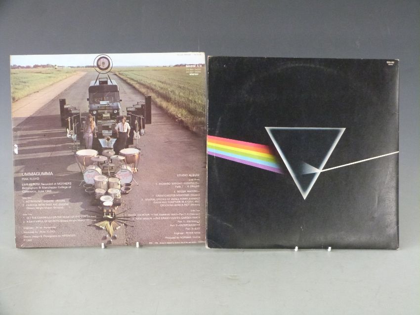 Pink Floyd - Ummagumma (SHDW1 + 2) records and cover appear at least Ex. The Dark Side of the Moon (SHVL804) with 2 posters and 2 stickers, French issue. Record and cover appear at least Ex