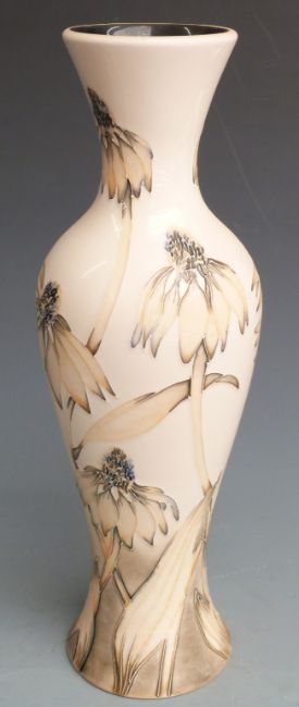 Moorcroft signed pedestal vase decorated with coneflowers / Rudbeckia, dated 2001, boxed, H32cm
