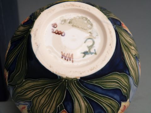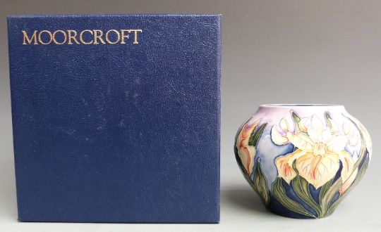 Moorcroft signed bulbous vase decorated with orchids and dated 2000, boxed, H11cm
