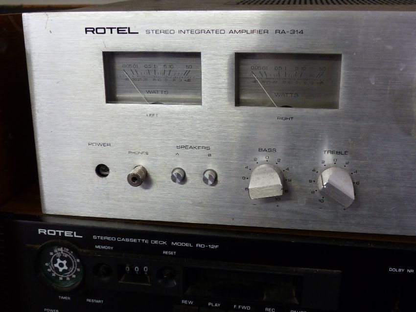 Rotel stereo integrated amplifier RA314, a stereo cassette deck RD-12F and a pair of Celestion Ditton 15xR speakers
