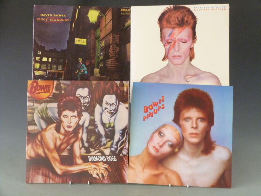 David Bowie - 14 albums including Ziggy, Aladdin Sane, Diamond Dogs, Pin Ups, Heroes, Station To Station, Young Americans, Live, Space Oddity, all orange labels, plus four others and three 12 inch singles