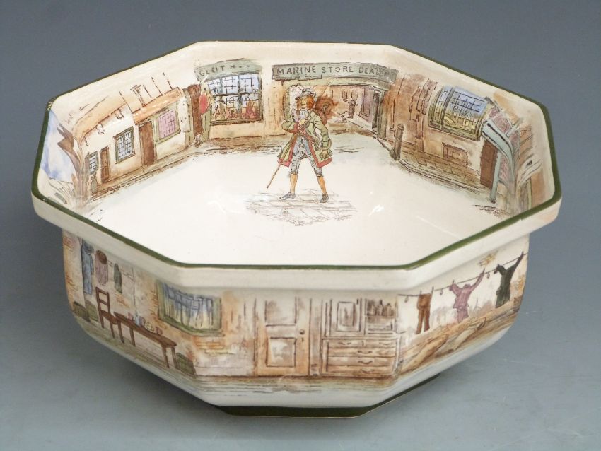 Royal Doulton Dickens Series Ware pedestal hexagonal bowl, H10cm, diameter 26cm