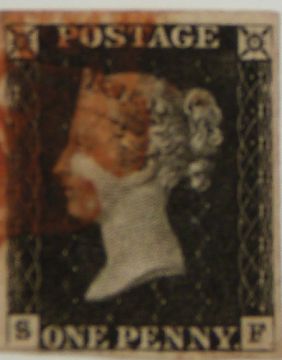 Great Britain 1d black S.F. 4 margins, light red Maltese cross cancellation, plate 4