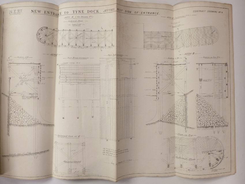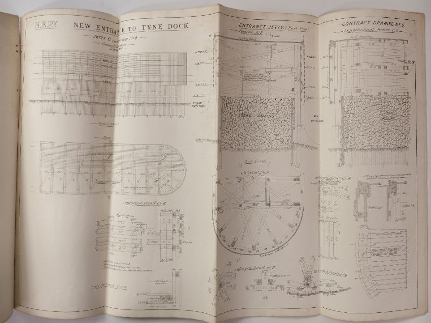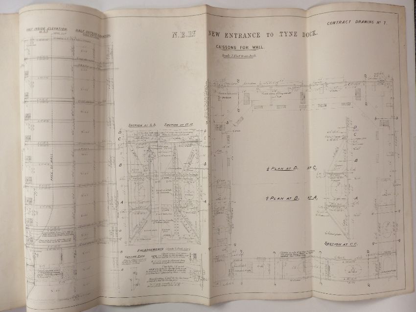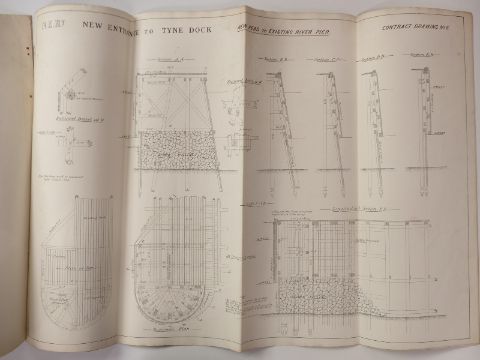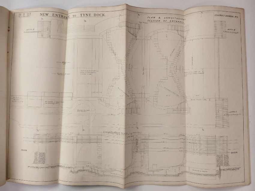 Eight architect's or civil engineering drawings of North Eastern Railway Tyne Dock, dated December 1890, approximately 70 x 100cm