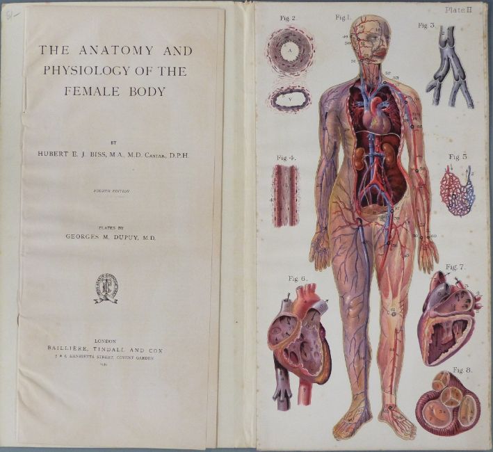 The Anatomy & Physiology of the Male & the Female Human Body (Bailliere’s Popular Atlas) Comprising 2 volumes with Descriptive Text by Hubert E. J. Biss and Plates by Georges M. Dupuy, published Bailliere Tindall & Cox 1924 and 1939 with detailed coloured illustrations on folding pages, in cloth backed illustrated boards (2)
