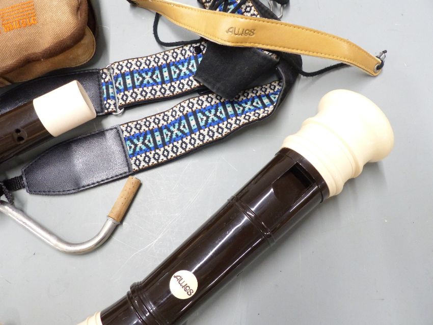 Aulos composite bodied bass recorder, in soft carry case with shoulder strap no. 533-EB