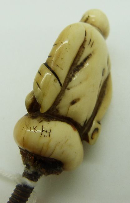 19th/20thC carved ivory seated Buddha with screw fitting by Ranele, possibly a parasol handle, H5cm