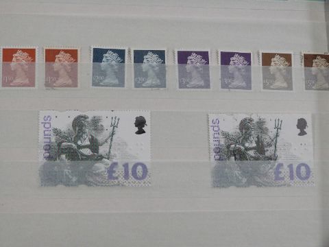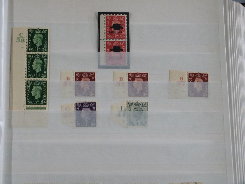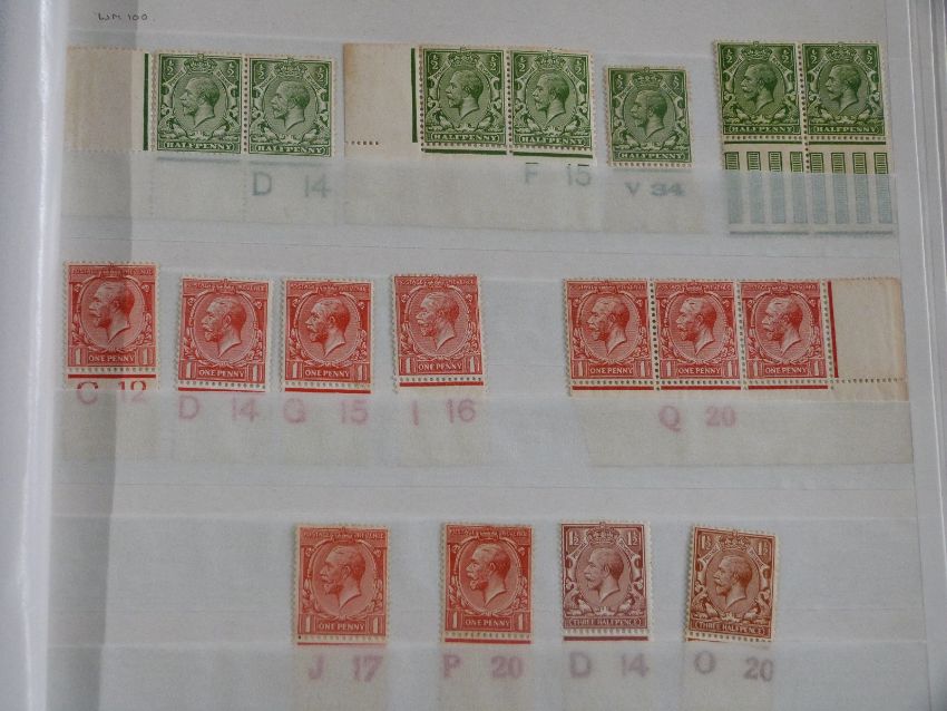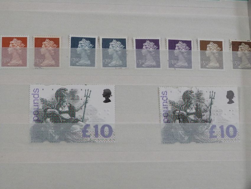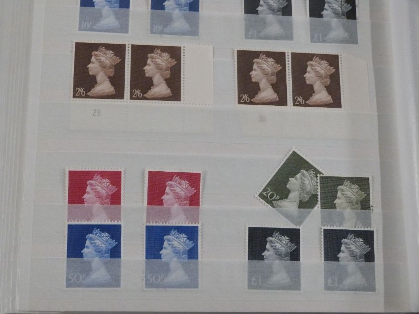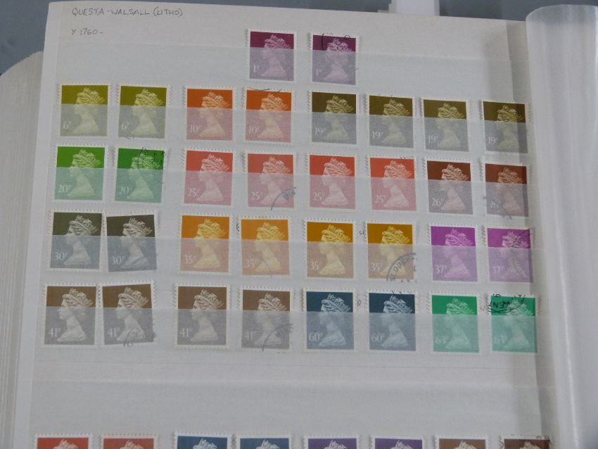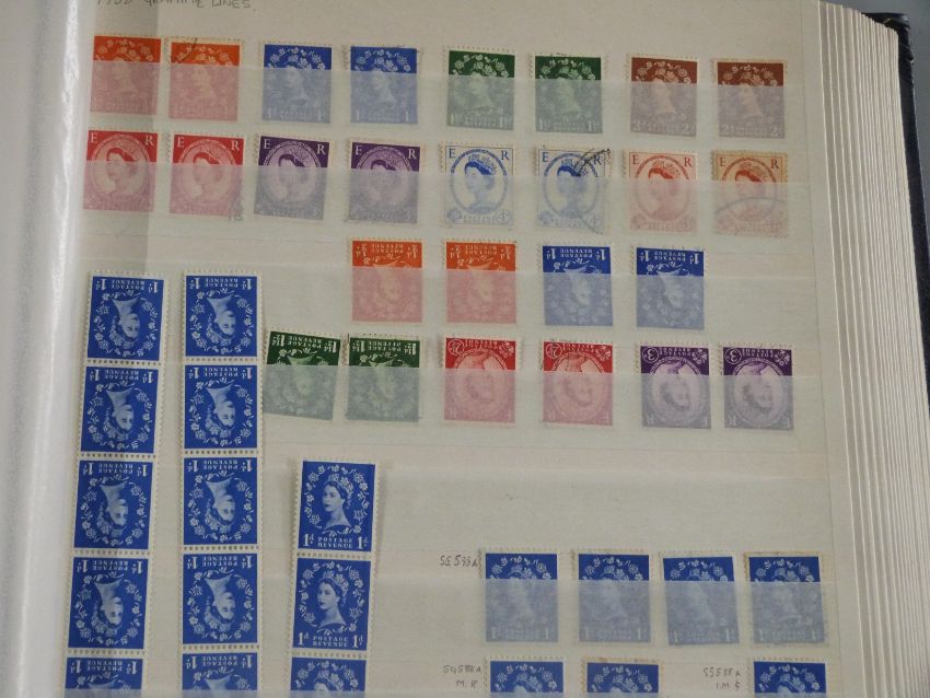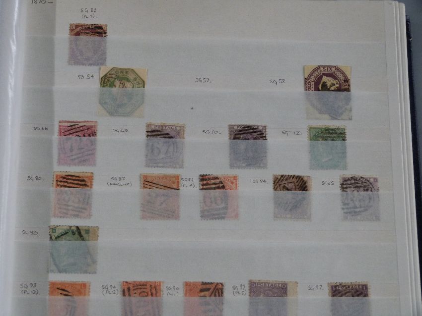 A very extensive collection of GB stamps in six large Stanley Gibbons GB stockbooks 1840-2014. Early issues include 1d black and 2d blue, 1/2d rose set except plate 9, 1d red set except plate 225, surface printed issues, full range of George V & VI including control numbers, large and detailed collection of Machins, all QEII commemorative sets mint used, mini sheets etc