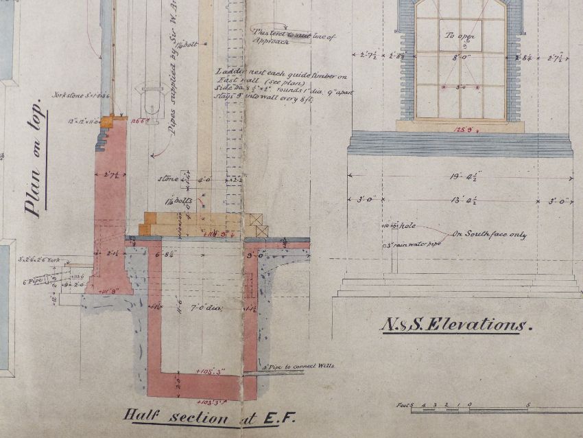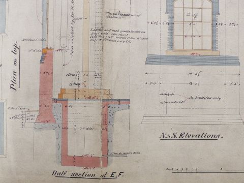 Tower Bridge, London, Victorian architect's or civil engineering drawing depicting the accumulator house, dated 1891, 64 x 98cm