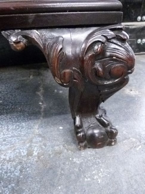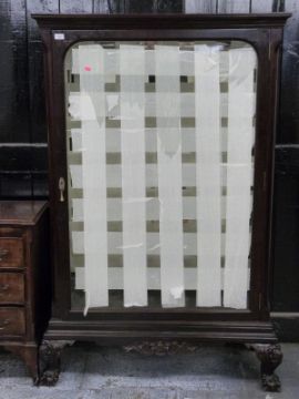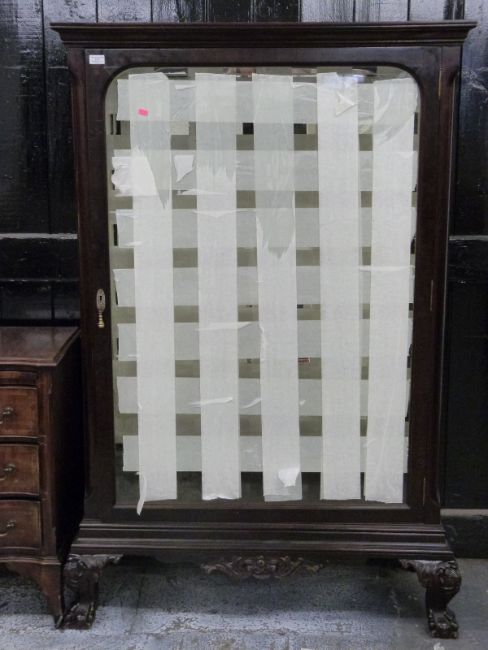 A 19th / 20thC mahogany bevelled glass cabinet with provision for adjustable shelves, raised on ball and claw feet, W106 x D43 x H165cm