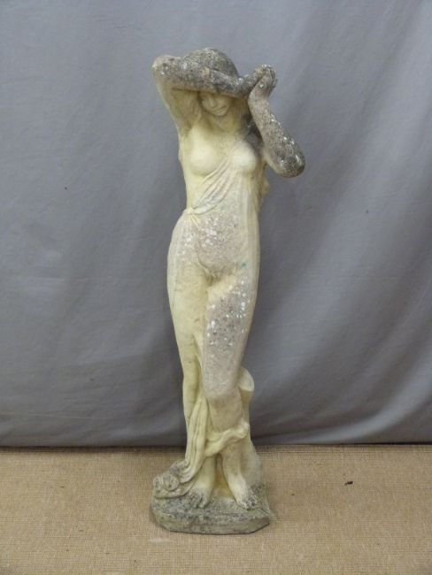 A garden figure of a semi nude maiden, H113cm