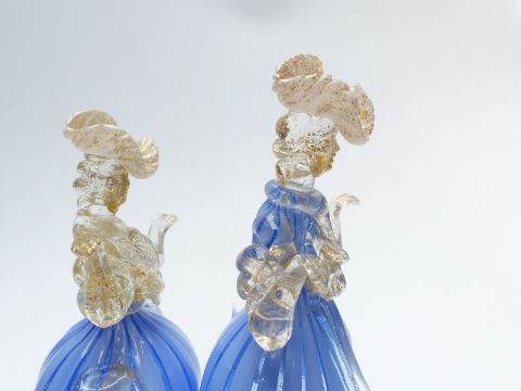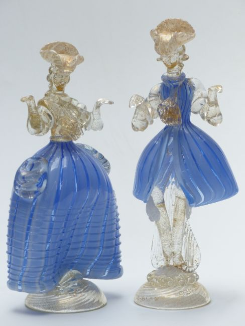 Pair of Murano glass figures in the zanfirico style, largest 27cm tall
