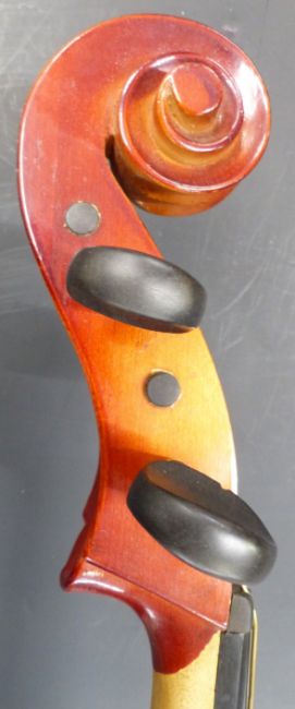 Three-quarter size cello labelled Michael Poller, Producator, De Viora Bucuresti, complete with bow and soft gig bag, 66cm two-piece back, bow weight approximately 76.8g