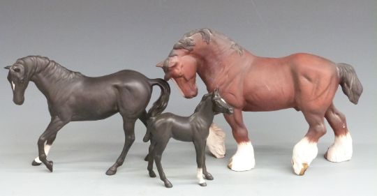 Beswick Large Action Shire and Black Beauty and Foal, tallest 21cm