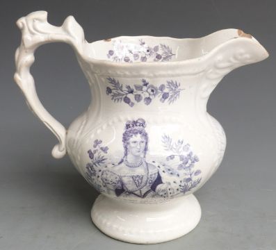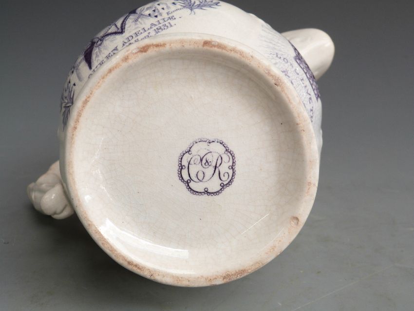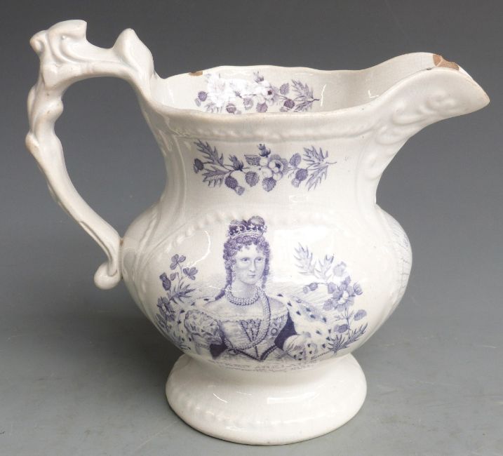 William IV and Queen Adelaide commemorative pedestal jug with transfer printed portraits, H18cm