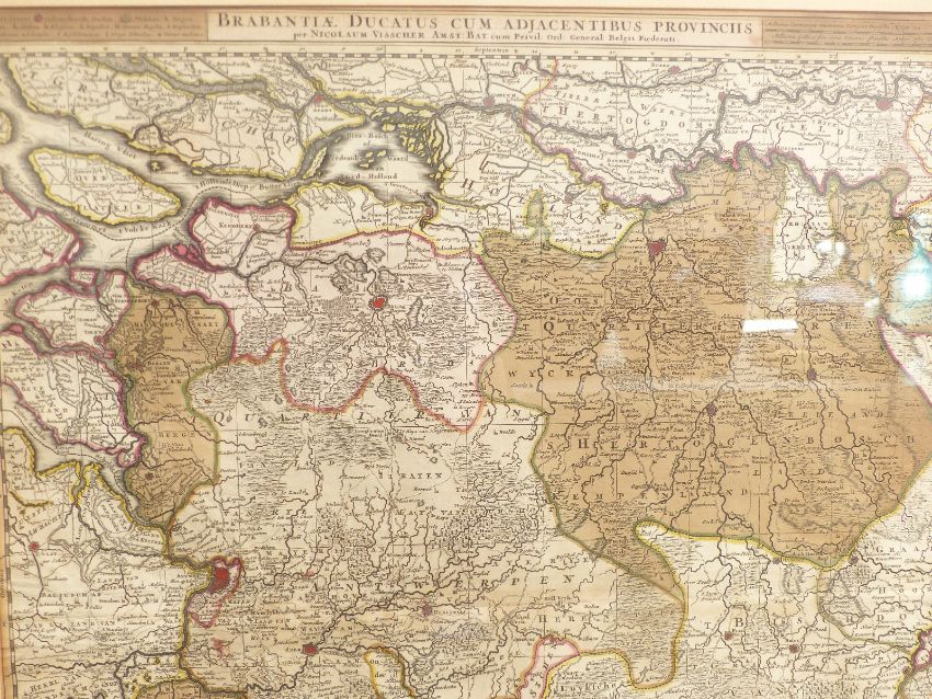 18thC map of Holland and Belgium 'Brabantiae Ducatus cum Adjacentibus Proviniis per Nicolaum Visscher Amst: Bat. cum Privil Ord: General Belgii Foederati' 59x49cm