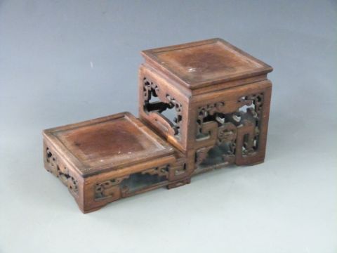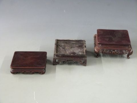 Six 19th/20thC Chinese carved hardwood stands, three circular and three square, largest diameter 20cm