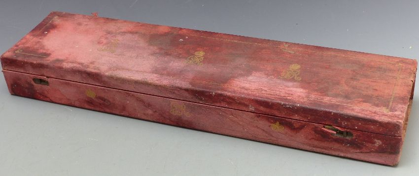 George V tooled leather cased grant of arms relating to Sir William George Tyrrell, with two attached seals, length of case 57cm