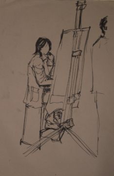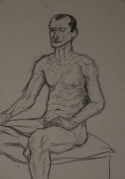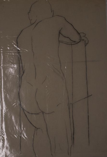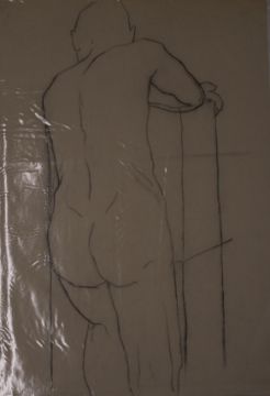 Thirteen charcoal and similar drawings and sketches including male nudes, artist at their easel, further portraits, still life studies etc, each approximately 83 x 59cm