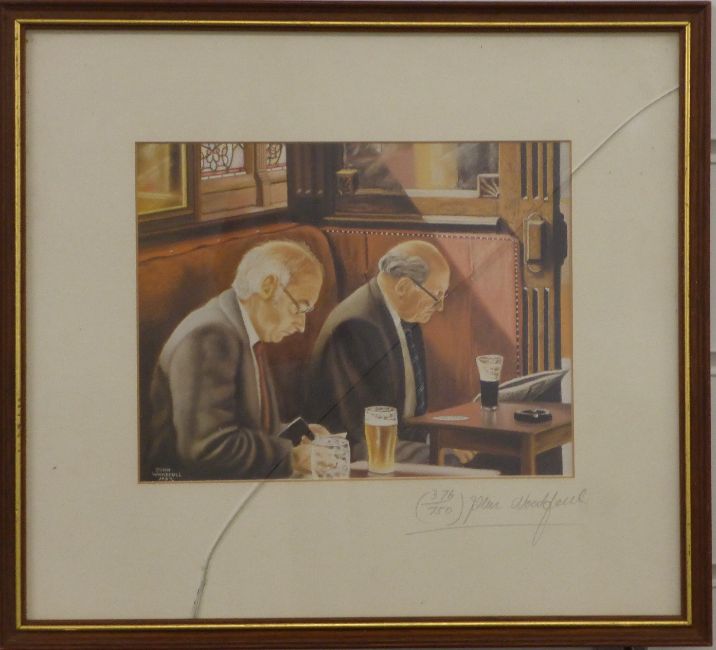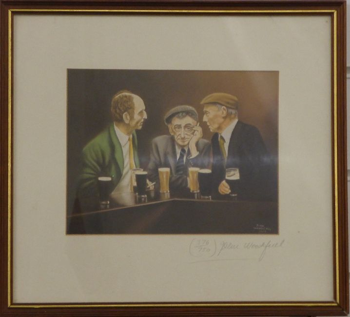 Set of four John Woodfull signed limited edition (376/750) Irish pub scene prints, each 15 x 20cm