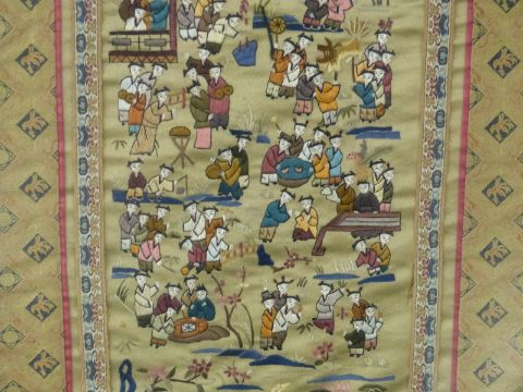 Chinese 19th/20thC embroidered cuff or panel, 52 x 22cm