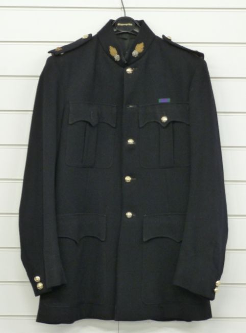 British Army number 1 dress 'blues' jacket Royal Military Academy Sandhurst, with regimental buttons, medal ribbon and Major's rank shoulder titles