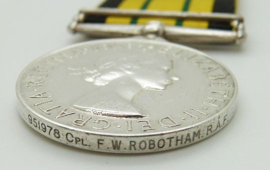 Royal Air Force Africa General Service Medal with clasp for Kenya, named to 951978 Cpl F W Robotham, RAF