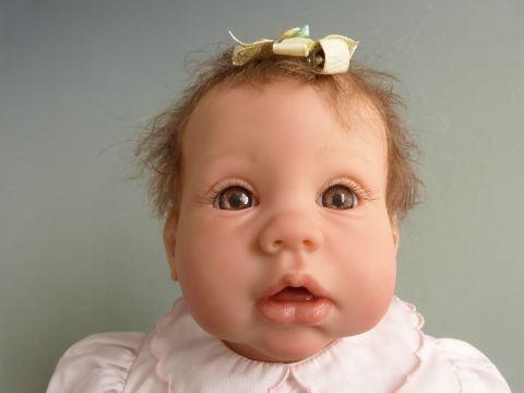 Lee Middleton Original Dolls limited edition doll with open mouth, fixed brown eyes and pink outfit, marked to the back of the neck #020501 2001 Lee Middleton Original Doll 688/800, 55cm tall.