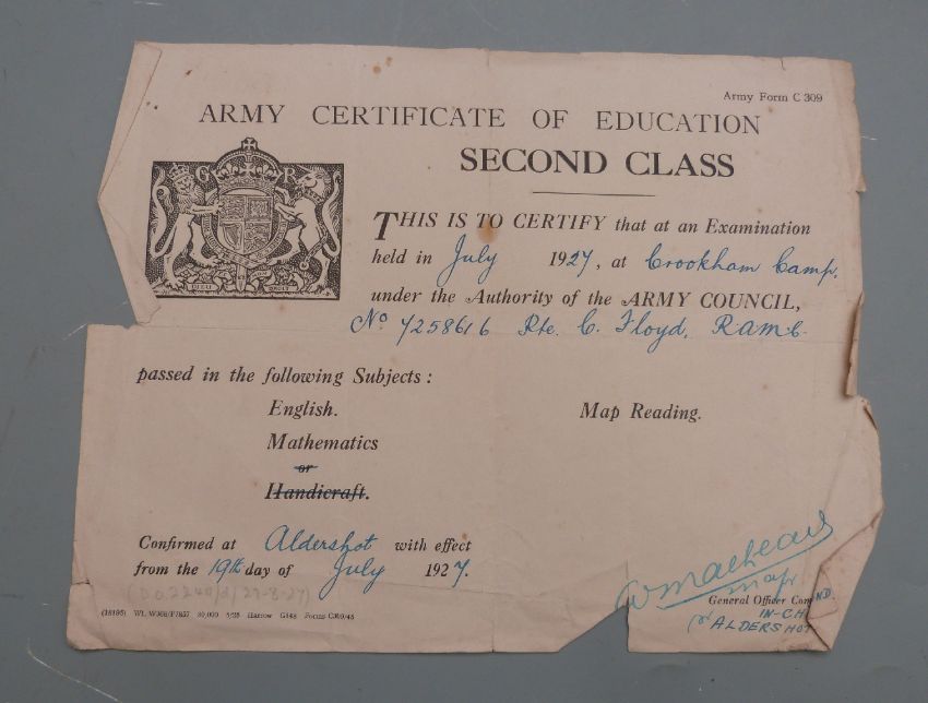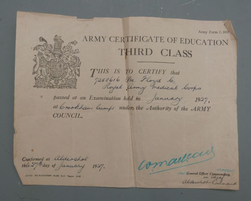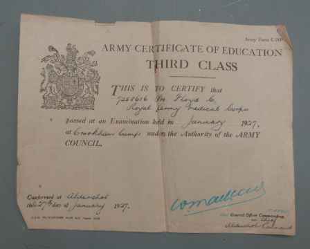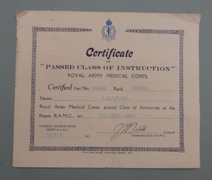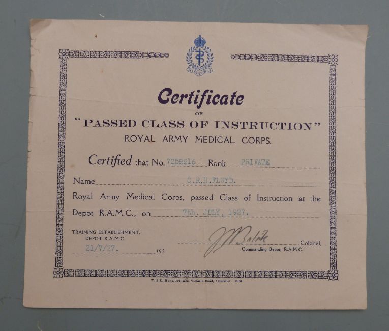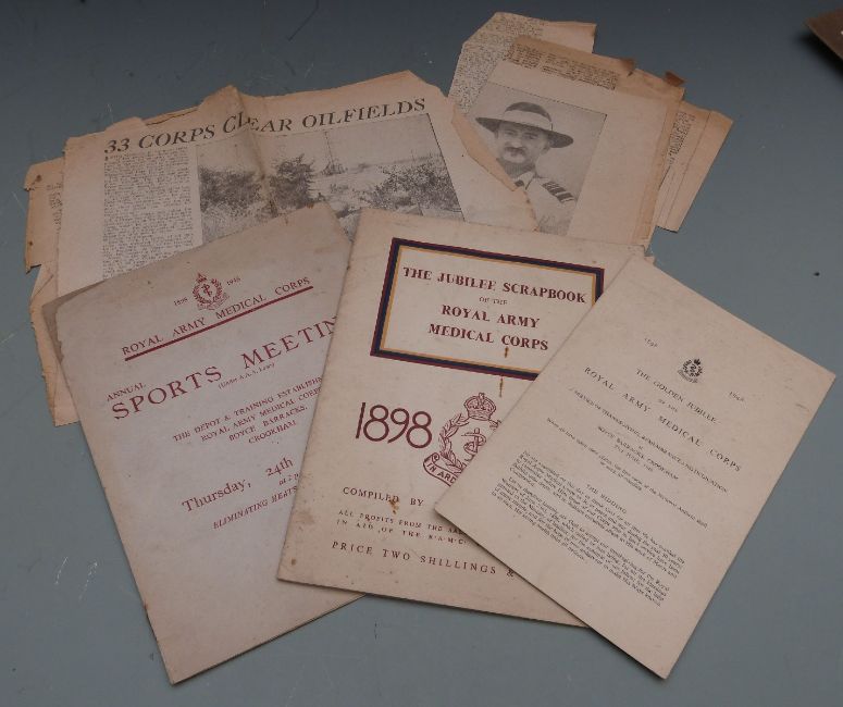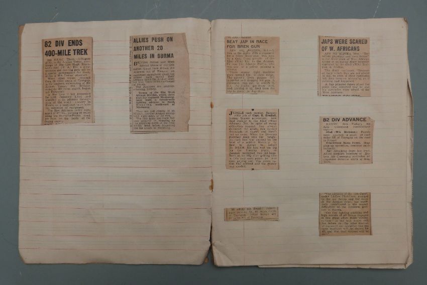 Royal Army Medical Corps ephemera relating to Lieutentant C R H Floyd from enlistment to discharge, c1927-1945. Includes a scrapbook with photographs, unused Japanese postcards, historically interest letter to officers warning them not to speak in derogatory terms about fellow 'African' soldiers, Japanese banknotes, cloth badges, newspaper clippings, special orders relating to Arakan campaign, war correspondent printed letter etc