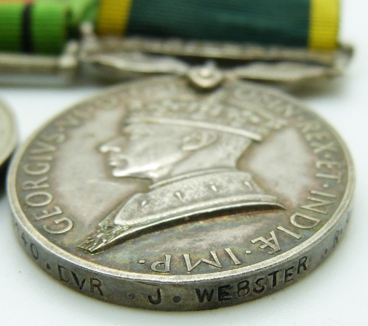 British Army WWII medals comprising 1939/1945 Star, France & Germany Star, Defence Medal, War Medal and Territorial Efficiency Medal named to 62140 Driver J Webster, RASC