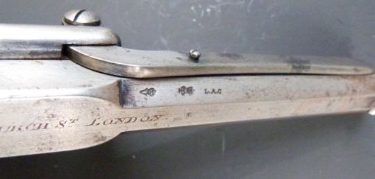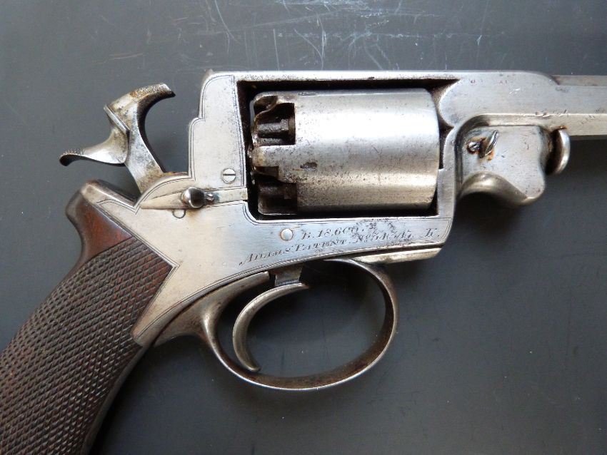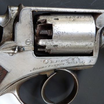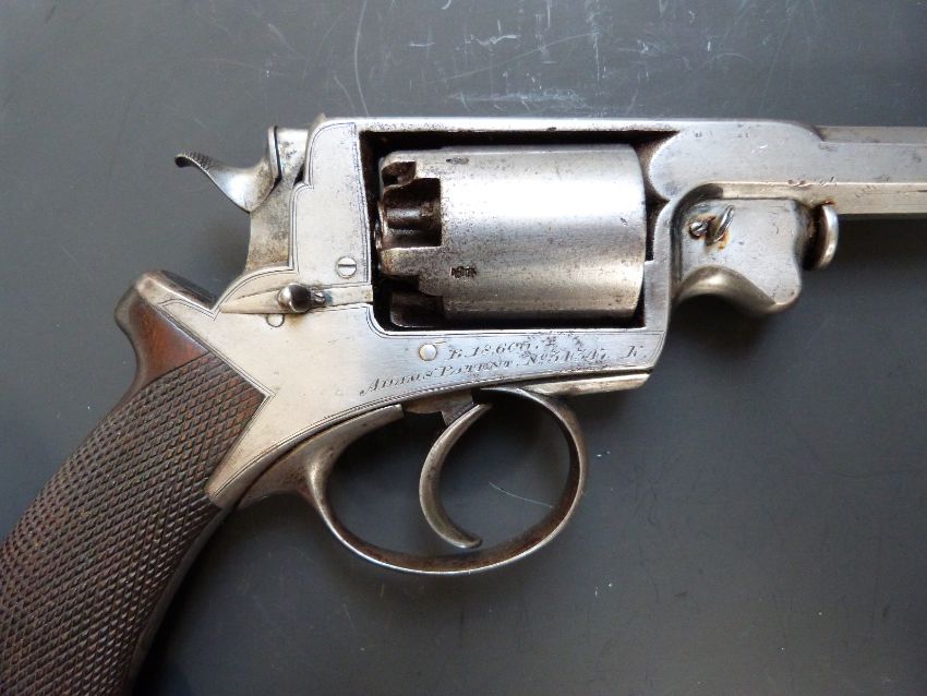 John Blanche & Son Adams' Patent 54 bore five-shot percussion single action revolver with chequered grip, frame and cylinder engraved '34347' and 5.5 inch part octagonal barrel engraved 'Blanche & Son. 29. Gracechurch St London.', overall length 32.5cm, serial number 34347.