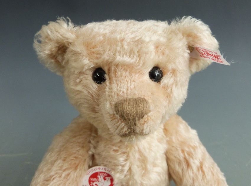 Steiff Teddy bear Classic with cream mohair, 28cm tall, limited edition 1994, in original bag.