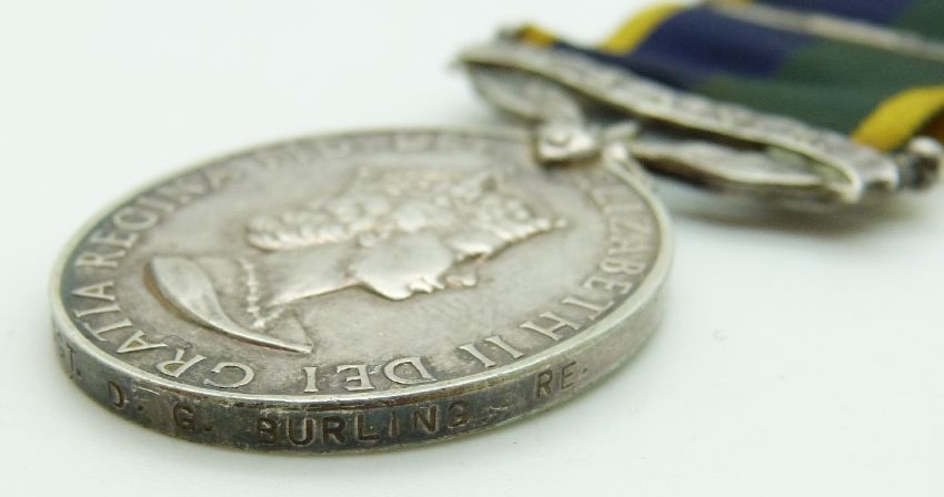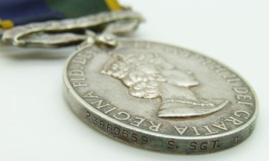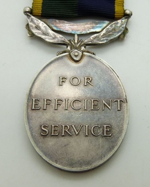 British Army Efficiency Medal T & AVR (Elizabeth II) named to 2386065 Staff Sergeant D G Burling, Royal Engineers, with bar and miniature