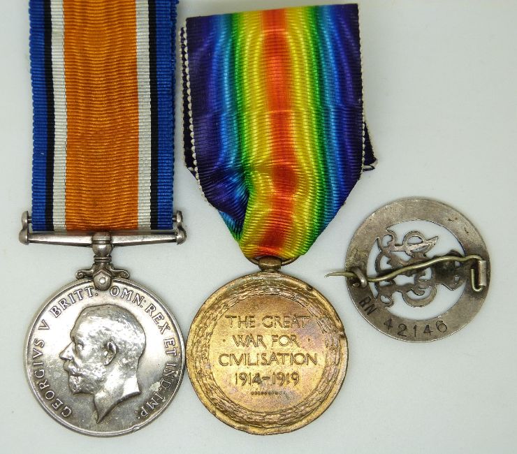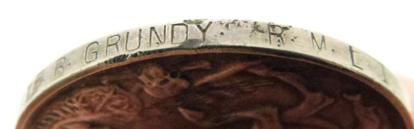 Royal Marines Light Infantry WWI medals comprising War Medal and Victory Medal named to 18257 Pte B Grundy, RMLI together with silver wound badge