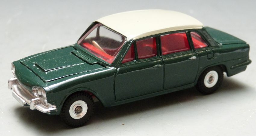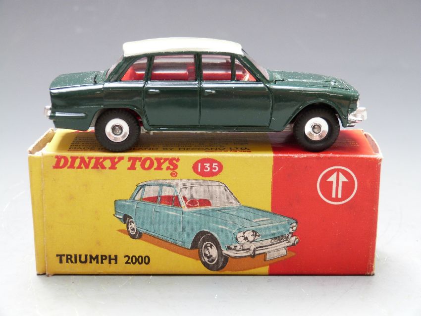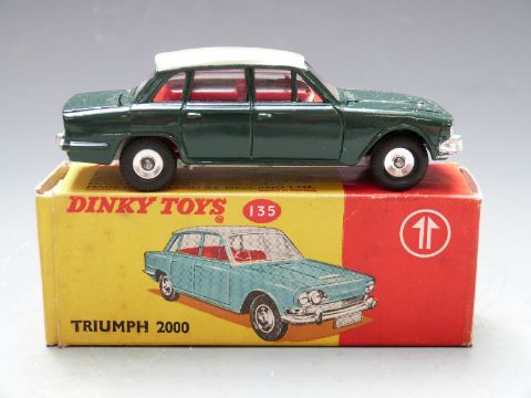 Dinky Toys diecast model Triumph 2000 with green body, white roof and red ineterior, 135, in original box.