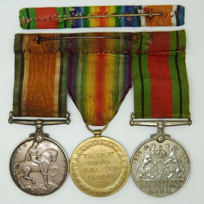Royal Navy WWI medals comprising War Medal and Victory Medal named to 76720 A E Sullivan, RN (replacements) together with a Defence Medal