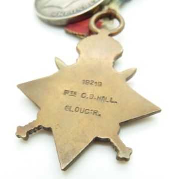 British Army WWI medals comprising 1914/1915 Star, War Medal and Victory Medal named to 19219 Pte C D Hill ,Gloucestershire Regiment