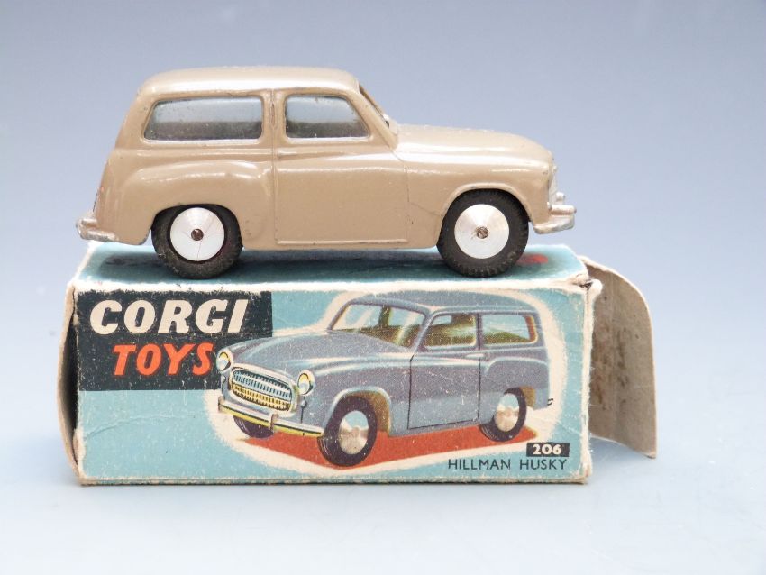 Corgi Toys diecast model Hillman Husky with tan body, 206, in original box.