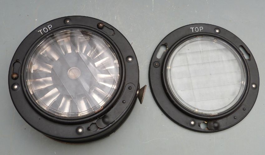 Royal Navy signalling lens in box, Admiralty Pattern 16082 AB 1944