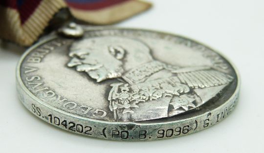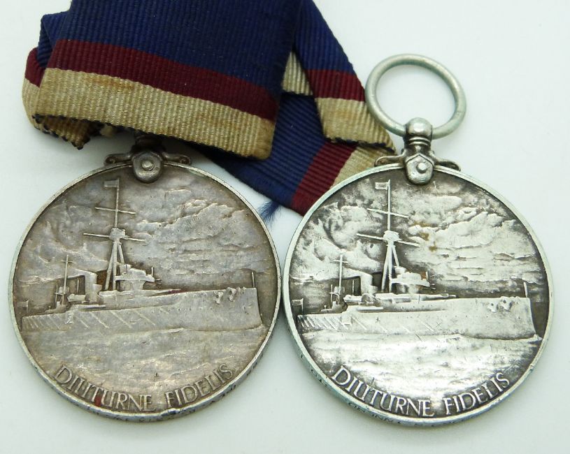 Royal Fleet Reserve Long Service and Good Conduct Medals named to SS104202 POB9096 G Inerd, RFR (George V) together with a George VI example named to Ply B 2374 WH Cotterell, RFR