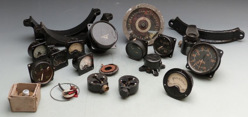 Quantity of WWII and later aircraft instruments and gauges to include 6D/857  and 6D/430 oxygen gauges, 6A/1598 pressure gauge, 6A/1032 junction box, 6A/743 compass repeater etc some possibly ex Spitfire, Lancaster or similar