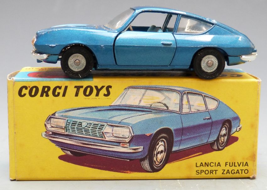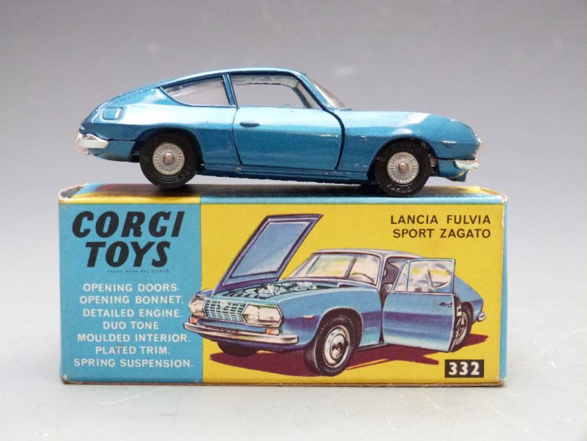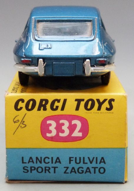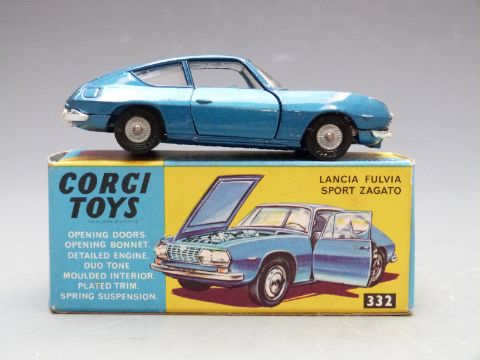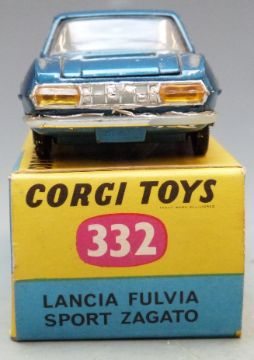 Corgi Toys diecast model Lancia Fulvia Sport Zagato with metallic blue body and pale blue interior, 332, in original box.