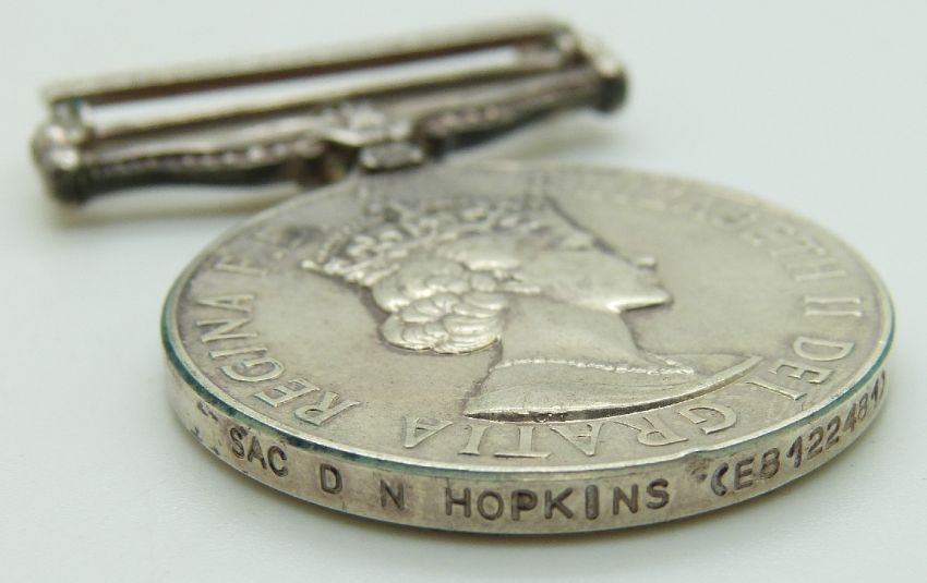 Royal Air Force General Service Medal with clasp for Northern Ireland, named to E8122481 SAC D N Hopkins, RAF
