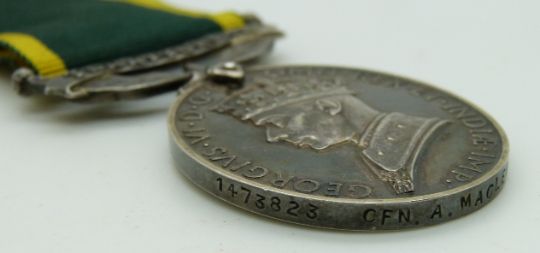 British Army Territorial Efficiency Medal (George VI) named to 1473823 CFN A McLeod