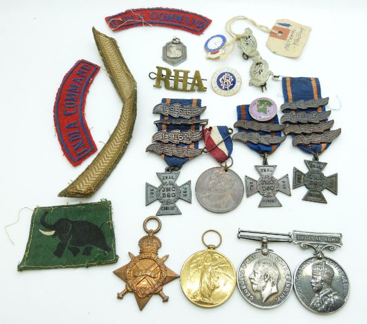 British Army WWI medals comprising 1914/1915 Star, War Medal and Victory Medal named to Gunner later Sergeant F T A Howell, Royal Field Artillery / Royal Horse Artillery together with his Long Service & Good Conduct Medal, documentation and ephemera etc